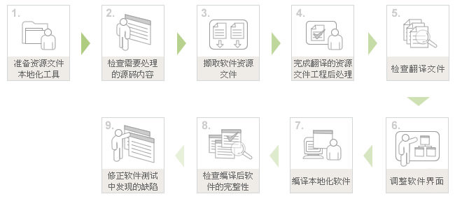 軟件本地化的處理流程與具體處理內(nèi)容有關(guān),其流程如下: